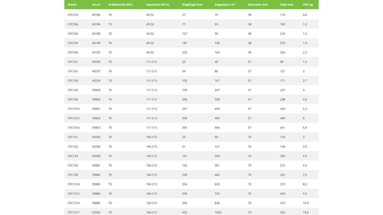 Enkelverkande tryckcylindrar CFC