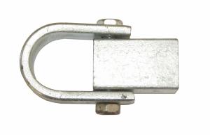 Längd: 305 mm. Inre bredd: 80 mm. Höjd insida/överhäng på grinden: 53 mm. Hål för 12 mm bult. Galvaniserad