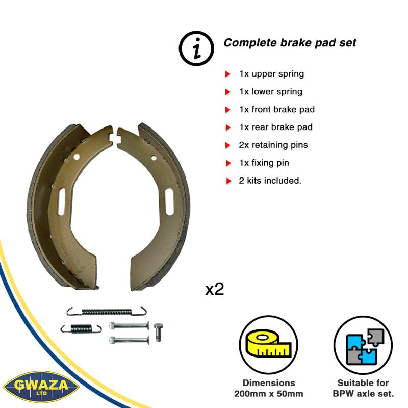 Bromsback kompl. sats 200mm x 50mm - passar BPW axlar