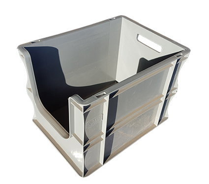 Förvaringslåda med öppen front. Storlek; Djup 400 x Bredd 300 x Höjd 290mm. 25 liter. Stapelbar. Grå plast