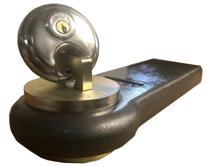 Stöldskydd för släpvagnar/trailer med dragögla. Bara att trä i och låsa med låsbleck och hänglåset. Passar 30mm dragöglor. Zink pläterad.