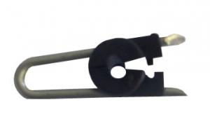 Spikmärla för enkel infästning av tråd och nät på trästolpar. Höjd: 108 mm. Bredd: 38 mm - 45 mm. Tjocklek: 8 mm