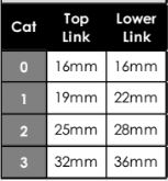 Användbar längd: 70 mm. Traktorände: Kat.2. Redskapsände: Kat.2.
