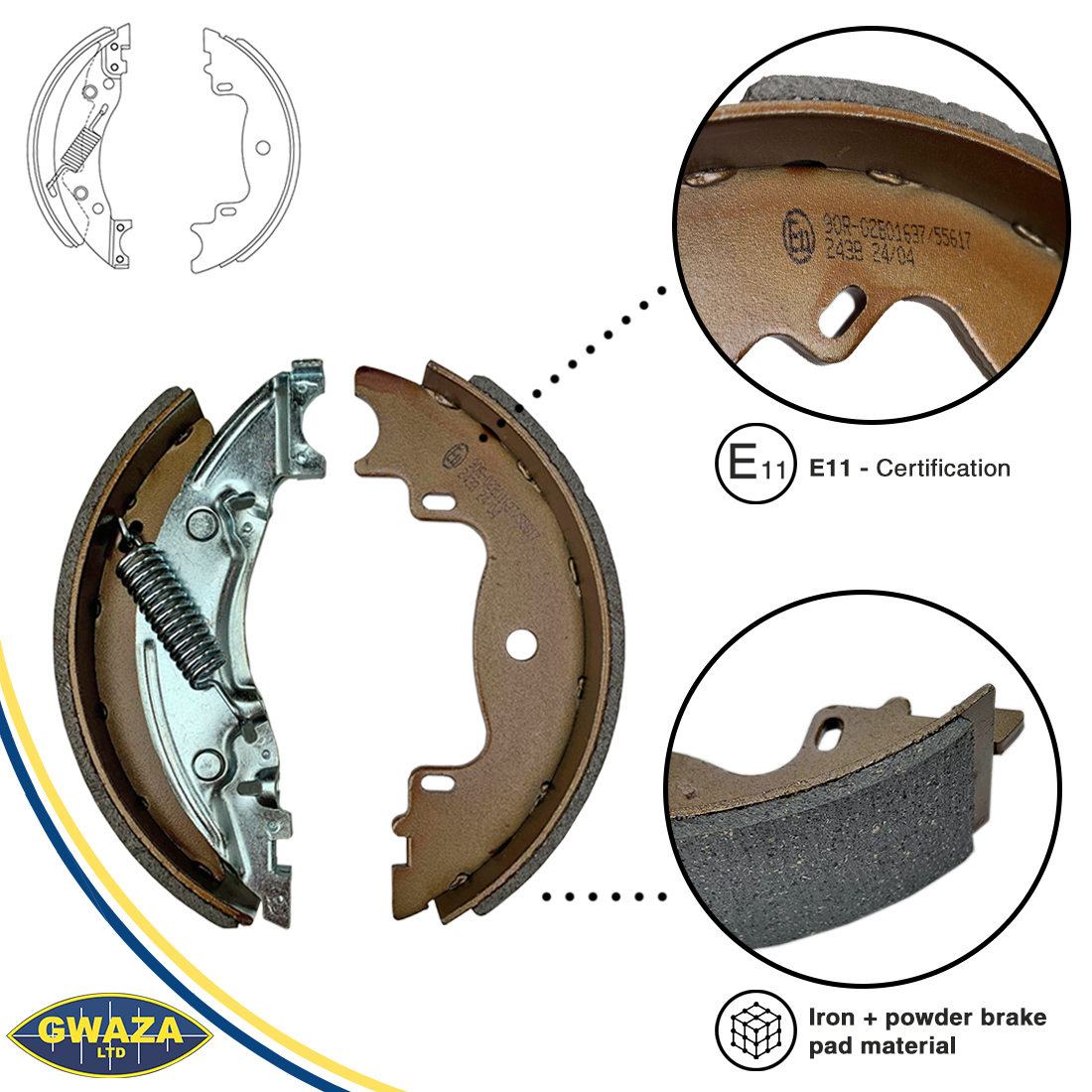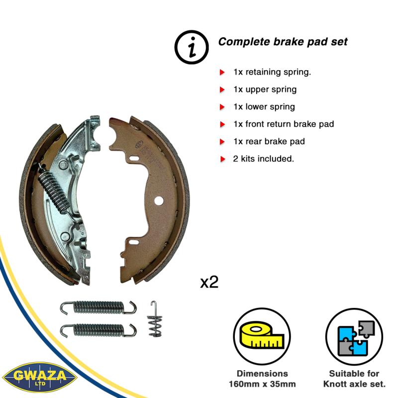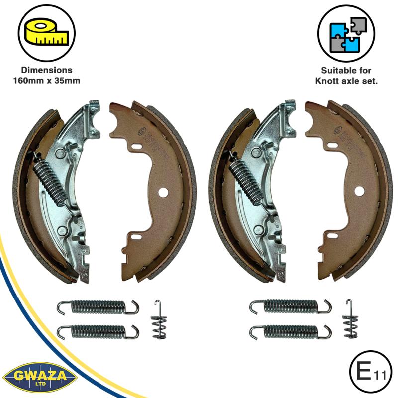 Bromsbackar & fjädrar 160 x 35 mm. Innehåller: 2 par bromsbackar samt fjädrar. E-märkt