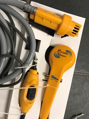 För anslutning till ett 12V cigarettändaruttag. Komplett med pumpanslutningskabel och duschhuvud. Förvaringsväska ingår. Vikt: 1 kg
