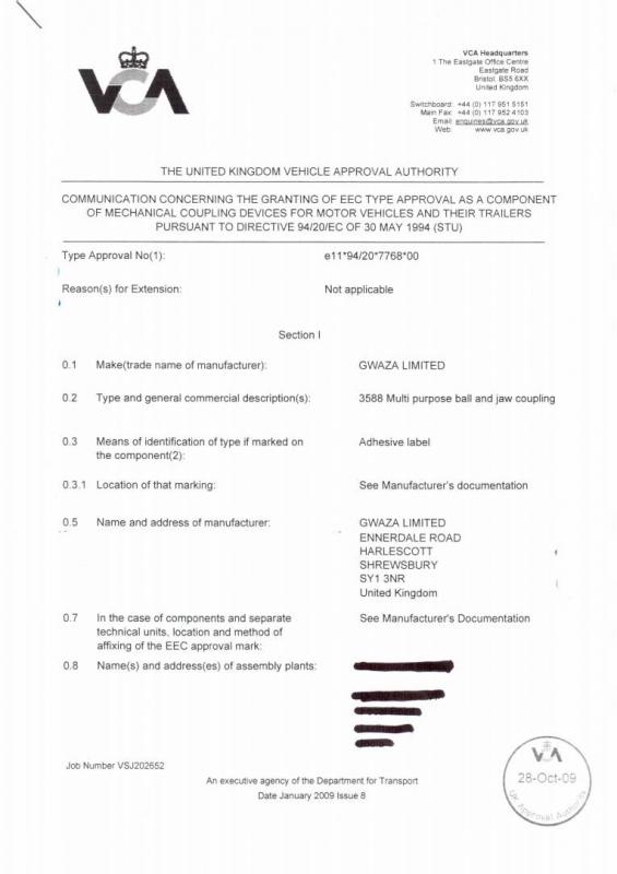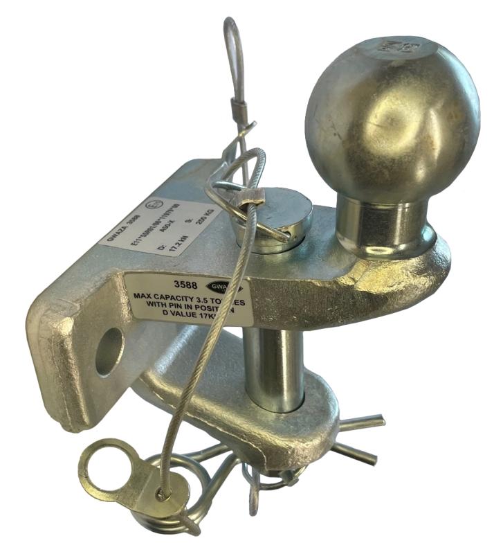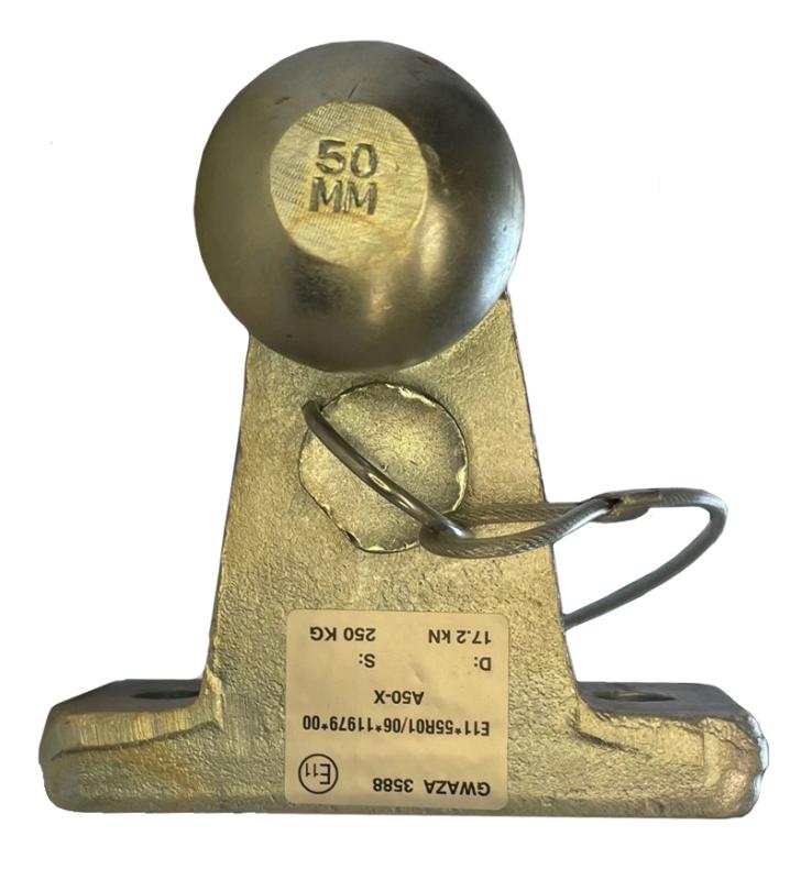 50 mm:s kula samt sprint med diameter 25 mm. Max statiskt last på kulan 3500 kg. Max statiskt last på dragpinnen 3500 kg.