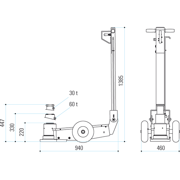 Lufthydrauliska domkraft Mammut M60/22 60/30 ton 218mm hög
