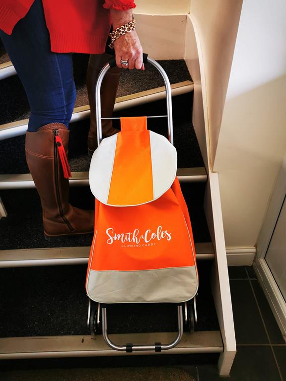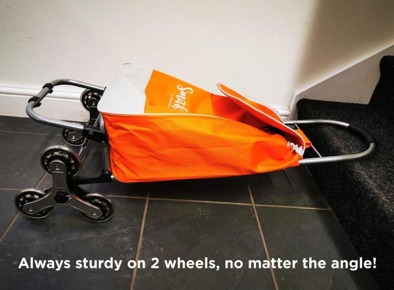Smith & Coles Climbing Caddy. Tack vare konstruktionen med 3 hjul på varje sida "klättrar" vagnen enkelt uppför trapporna. Se mer info nedan!