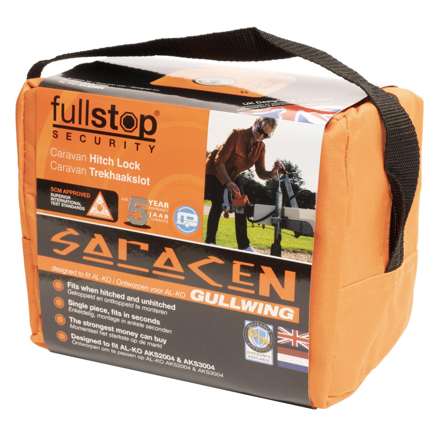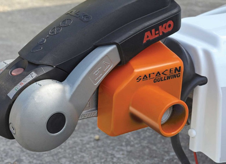 Saracen Gullwing är ett högsäkerhetslås för husvagns-/släpvagnskopplingar.