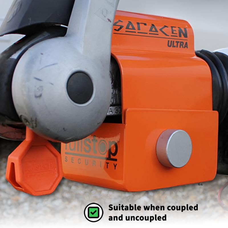 Saracen Ultra är ett högsäkerhetslås för husvagns-/släpvagnskopplingar.