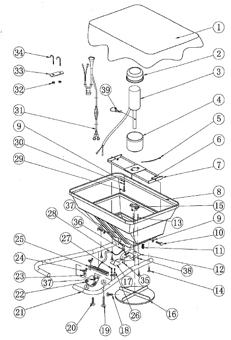 Plastbehållare med maxlast på 36kg. Monteras på ATV:s pakethållare etc. Sprider drygt 3,7 meter. Idealisk för utsäde, gödning, salt etc.