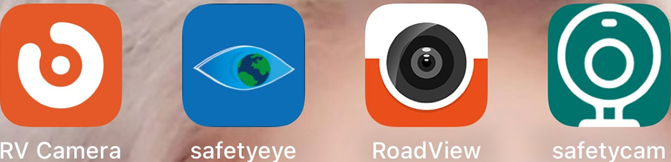 Se bild för exempel på kompatibla appar. RV Camera, safetyeye, RoadView eller safetycam.